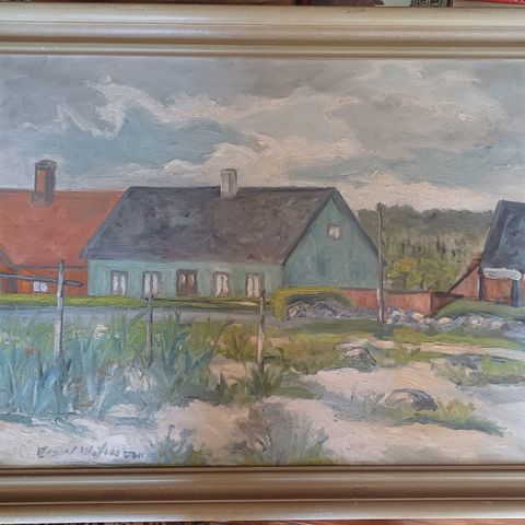 Signeerattu öljyvärimaalaus vuodelta 1955.