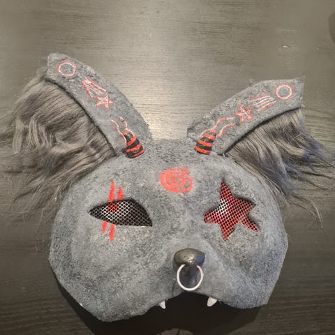 Itsetehty sarvekas 4silmäinen Therian maski, akryylimaalilla maalattu huopapinta, kuminauhakiinnitys, harvoin käytetty