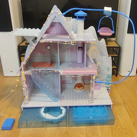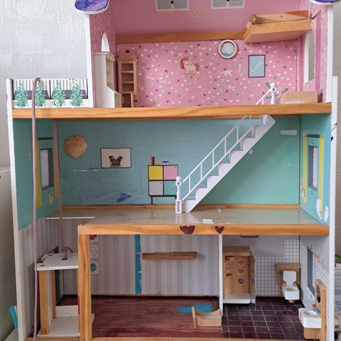 Seuraava leikkijä saa koristella vaikka tarroilla nukketaloa oman maun mukaan, ja luultavasti ne meidän lasten aiheuttamat käytön jäljet saadaan piiloon.