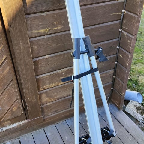 2kpl Menabo Chrono polkupyörien kuljetustelineitä auton katolle. Yhden pyörätelineen kantavuus 25 kg, sopii myös sähköpyörälle. Uudet ja käyttämättömät, myydään auton vaihdon vuoksi. Uusien hinta 450€, nyt yhteishintaan 150€. Vain Nouto Nokialta. (kulkeutuu omien menojen mukaan myös Turkuun)