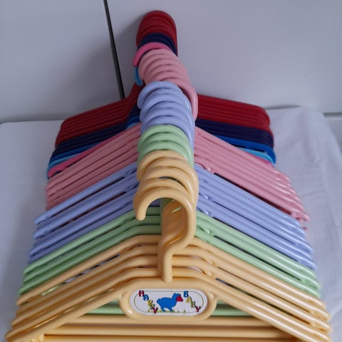Myydään kuvan lasten muovihenkarit 19kpl.