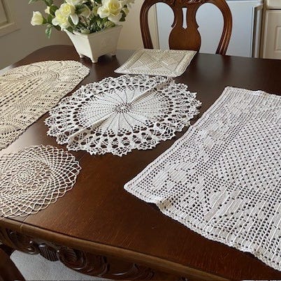 Myydään kuvan pienet virkatut ruskeat liinat 2kpl.