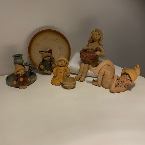 Vaikka saunanoven kahva ja pyyhe-koukku luonnon muovaamista puista ja sauna-mittari vanhasta tervaskannosta vaikka juhannussaunaan käyttämättömät.Yhteishintaan mielellään,