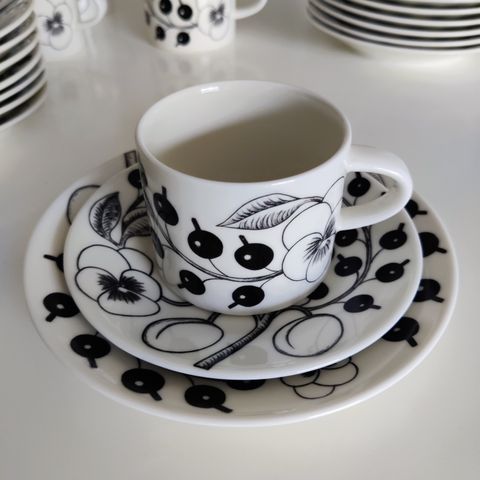 Myyn kahvikupin (0,18 l), 14 cm alus- ja 16,5 cm pullalautasen tai teekupin (0,28 l) ja pullalautasen (16,5 cm) seteittäin.