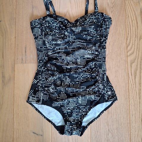 Siisti ja erittäin hyväkuntoinen uimapuku. Vastaa kokoa 46-48. Metalliset kaarituet. Kuppikoko B ja C.