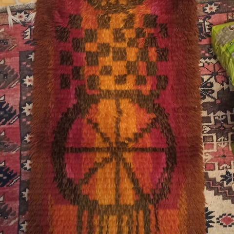 Myydään A.W. Raition suunnittelema vanha Musta tulppaani-seinäryijy. Ryijy on siisti ja ehjä. Ryijyn korkeus on 147 cm. Ryijyn leveys on 100 cm. Ryijyn takapuolella on ripustusvalmius seinälle. Ryijy on 1930-luvulta. Nouto. Käteismaksu noudettaessa. Vintage.