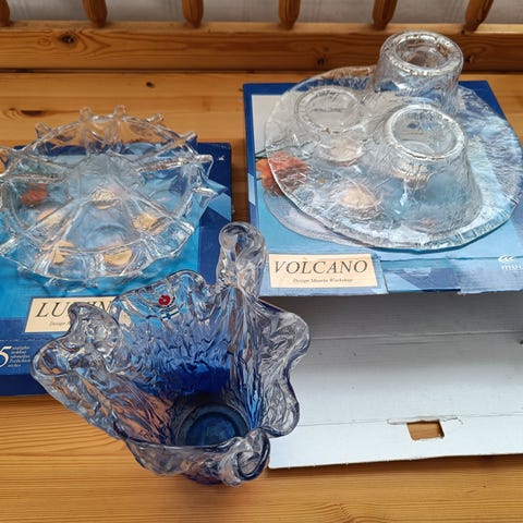 Myydään kuvan tuotteet. Mm. Nuutajärvi maljakoita. Yhteensä 3 kpl. Kts kuvat (mm koko tiedot).