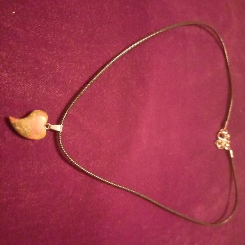 Kivisydän riipus teräsketjussa.