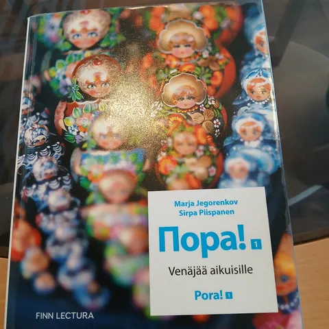 Pora! 1 Venäjää aikuisille -oppikirja, 4-8. painos, vuosi 2012. Kirjoittajat Marja Jegorenkov ja Sirpa Piispanen.