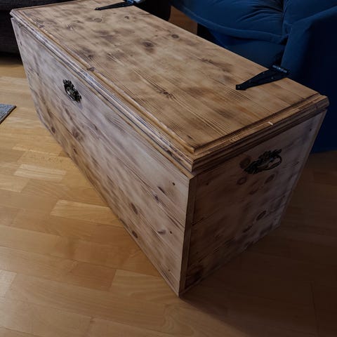 Myydään puinen säilytys-arkku. Leveys 80,5 cm, korkeus 51 cm, syvyys 51 cm. Siisiti ja hajuton. Uustuotantoa, tukeva ja painava.