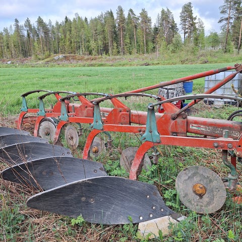 Suoraan käytöstä parit vuodet sitten jäänyt lekendaarinen laatuaura. Viimeiset kynnöt tehty viidellä siivellä ja siksi viimeinen siipi nostettu ylös. Ainakin nurmen kyntöön kulutusosia kannattaa vähän uusia. Vaihdossakin jotain voi koittaa tarjota. mikahautalan ät gmail piste com