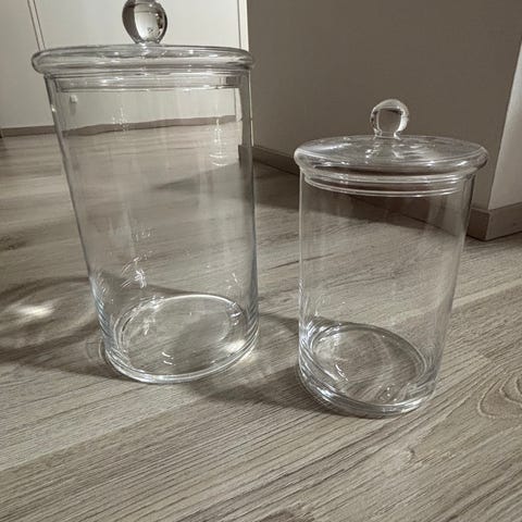 Uusi, käyttämätön Ikea Vindstilla valkoinen lasipurkki, korkeus 11 cm, halkaisija 9 cm.