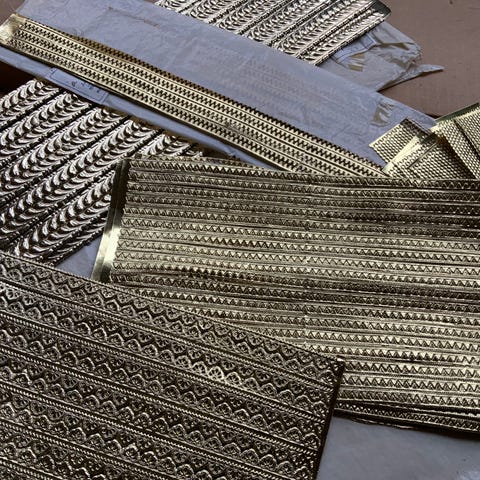 Ikivanhoja lehtikultaus arkkeja. Reunoilta rikkoutuneita päällimmäiset ainakin. Jostain 1950 luvulta peräisin, mutta edelleen kaunis kullan väri. Näitä isoisoisäni on käyttänyt ammattikultauksissa, mutta itselläni ei osaamista moiseen. Paino 31,7g silkkipapereineen. Arviolta n. 30 arkkia. Tarjoa hintaa!