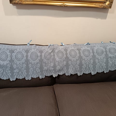 Virkattu kukkakuvioinen pitsiverhokappa 38cmx188cm