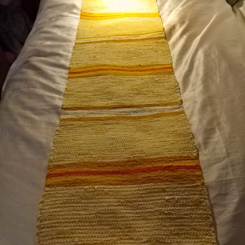 Itse tehty räsymatto/pöytäliina/penkin suoja