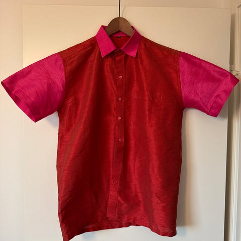 Läpinäkyvä oranssin punainen kauluspaita! Koko väljä 42, peffan peittävä pituus.