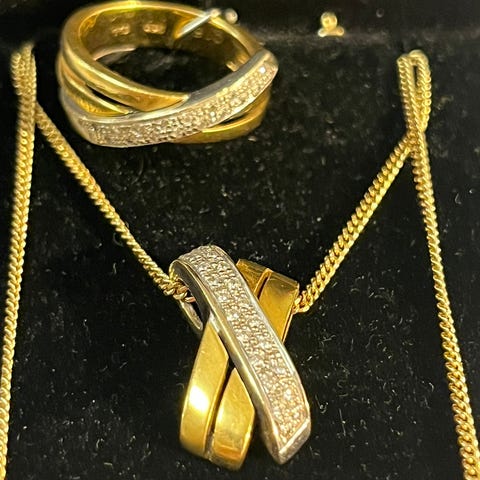 Harvinainen kultainen 18 K (750) riipus. Kivi Berylli + 24 pientä timanttia. Paino 9.4 g. Halkaisija 20 mm. Ei ketjua. Vain nouto.