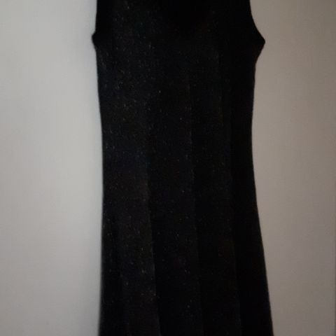Hihaton juhlamekko. Levenee alas päin. Helmassa on kiiltona paljetteja.