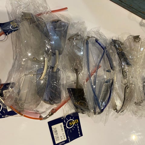 Todella hyväkuntoiset ja tyylikkäät aurinkolasit ilman vahvuuksia ja niille sopiva upea kotelo. Yhteensä 20€. Yksittäin 10€/kpl.