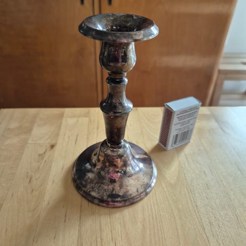 Hopeinen kynttilän jalka kolmelle kynttilälle. Korkeus 19,8cm.