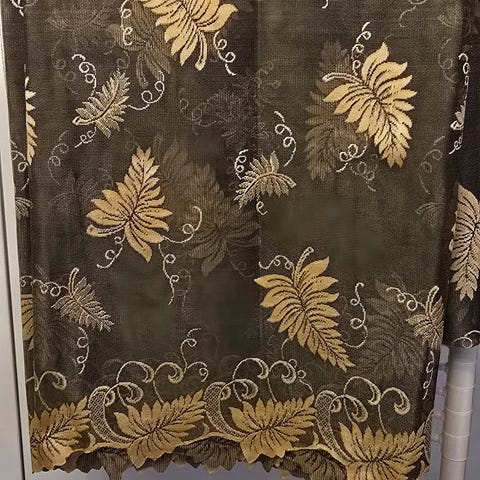 Kangas läpikuultava, toisessa päässä väri raidat, muutoin petrooli. koko 114X589cm. Voin postittaa vastaanottaja maksaa postikulut.