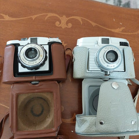 Siintä kuvan mukainen antiikki kamera vaikka koristeeksi tai korjattavaksi. Ilmeisesti joku nappi ylhäältä puuttuu ja sisältä jotain kolinaa kuuluu kun heiluttelee. Hieno kamera muuten ja kameran kotelokin hyvässä kunnossa.