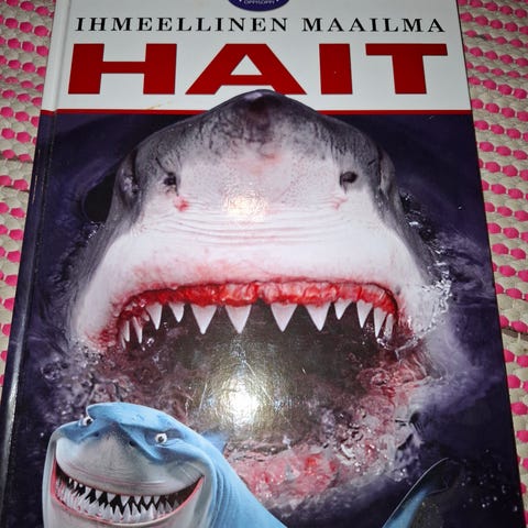 -Kirja "Hait". Kovakantinen nelivärikuvitettu kirja, jossa 64 sivua. Kirja on ehjä ja hyvässä lukukunnossa edelleen. Hieman normaalia käyttökulumaa on, kuten pyöristymiä kansissa yms.