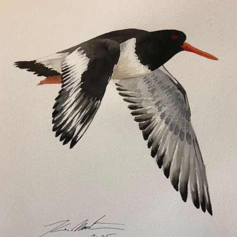 Lintuaiheinen akvarelli, meriharakka. Koko 28 *38. Maalattu laadukkaalle paperille ja ammattilaisvärein. Nämä sopivat hyvin vaikka kesämökin seinälle 🌿 pk 5 eur.