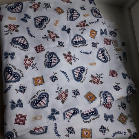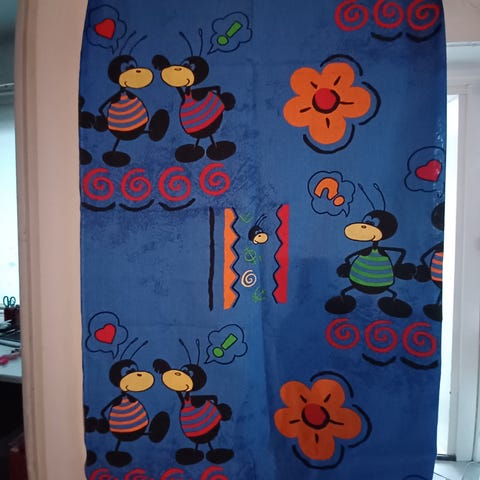 Lasten sisustuskangas ( 270 x 200 cm ) Kastelematon kangas on puuvillaa tai Puuvillasekoitetta. Kangas oli tarkoitettu ikkunaverhoiksi, muttei koskaan päätynyt ompeluun. Pupukangas.