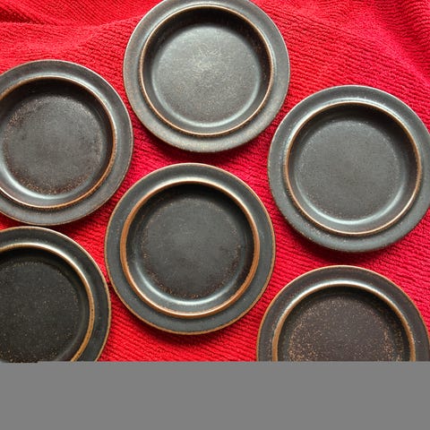 Arabian Ruska-sarjan teekuppeja ja erikokoisia lautasia.