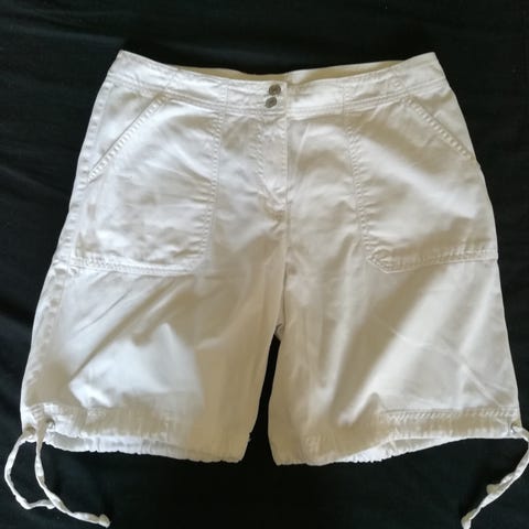 3 kpl Lindex mustia shortseja, koko 40. Vyölenkit, vetketju, solmimisnauhat vyötäröllä. Sivutaskut, läpälliset ja napilliset takataskut. Haarakorkeus 23 cm. Vyötärö 94 cm. 100 % pv. Yhdessä shortsissa tampeilla käännettävät lahkeensuut jolloin lahkeen pituus 11 cm + 3 cm. Toiset 2 ilman tamppikäännöksiä, jolloin 12 cm. Pm. 8,90e.