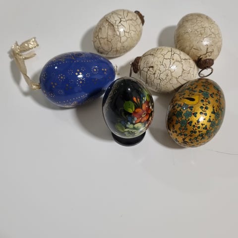 Huovutetut pienet pääsiäismunat. Korkeus noin 2,5cm. Ripustuslenkki jolla saa roikkumaan. 10 kpl yht 10e. Postitus tai nouto Nummela.