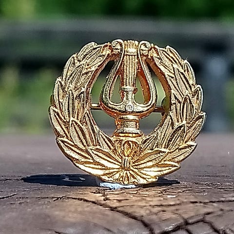 Myydään hyväkuntoinen kullattu ylioppilaslyyra. Kiinnitetään ylioppilaslakkiin, symboloi musiikkitaustaa (esim. musiikkilukio tai aktiivinen musiikkiharrastus).