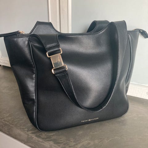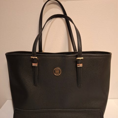 Musta Tommy Hilfigerin käsilaukku.