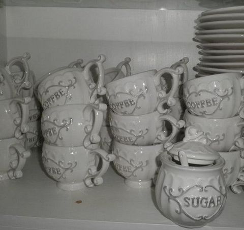 Valkoiset kahvikupit 14 kpl sekä uudet leipälautaset 24 kpl