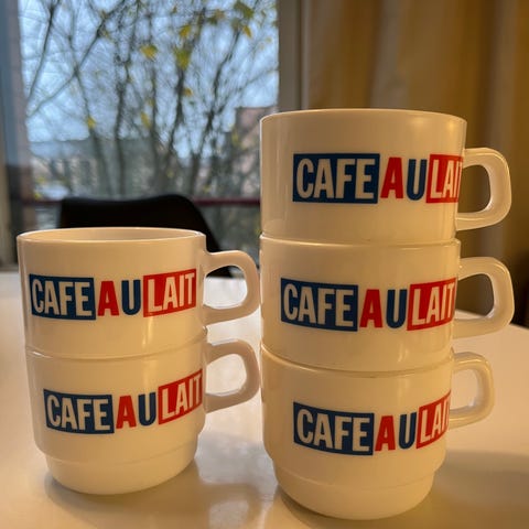Myydään ranskalaiset Cafe au lait-kahvikupit. 2kpl. Kupit ovat kuin uudet, ovat täysin käyttämättömät. Hinta 15€/2kpl.