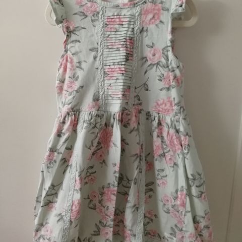 Kesämekko puuvillaa. Newbie. Vaalean keltaisia pieniä kukkia. Mekossa valkoinen vuori/alushame.