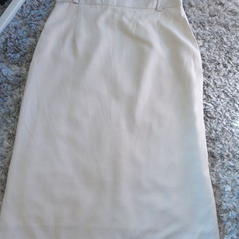Kouvola Finland, Beessin värinen Puolihame, koko 38, hameessa vuori, vyön lenkit, takana helmassa halkio, takana vetoketju ja nappi, materiaali 64%viskoosi, 36%polyesteri, vyötärön mitta 35.5 cm edestä mitta, pituus 69 cm, ehjä.
