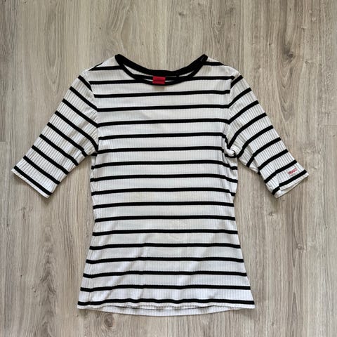 Tyylikäs ja laadukas Hugo Boss musta naisten t-paita, koko S. Klassinen malli, joka sopii moneen tilanteeseen – arkeen tai siistimpään menoon. Materiaali miellyttävää, napakkaa ja hyvin istuvaa puuvilla-elastaania. Uutena ostettu, erinomaisessa kunnossa.