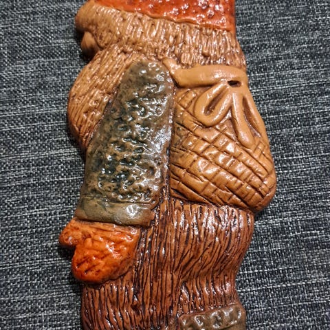 Käsin maalattu Leena Kostiandersin tekemä posliininen Sauna tonttu kork.9.5 cm 6 euroa ja Kala löylyn kiukaalle 2 euroa, Kala MYYTY!!!! ehjiä.