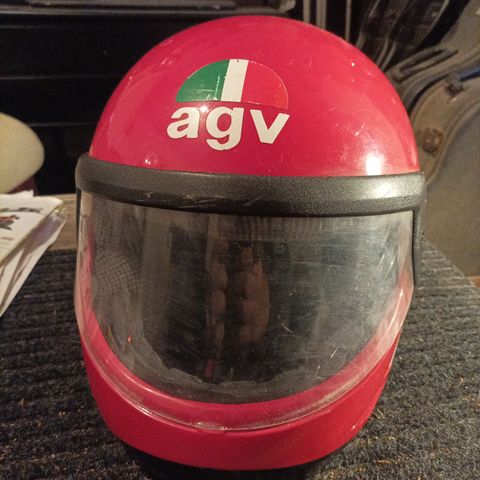 Punainen klassikkokypärä 80-luvulta. Suht. siisti, ehjä, ei pahoja naarmuja, paino 1250 g. Made in Italy.