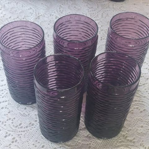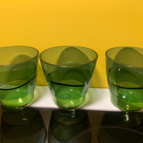 Jämäkät vihreäpohjaiset juomalasit 3 kpl. Tilavuus noin 4 dl. Uudenveroinen kunto, vain pölyyntyneet kaapissa. Lahjaksi saa sinivihreäpohjaisen, samanhenkisen lasin :)