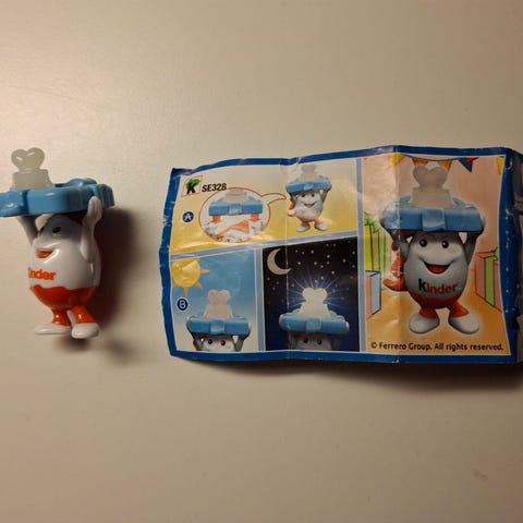 Hahmo Kinder suklaamunasta. Korkeus 4 cm.