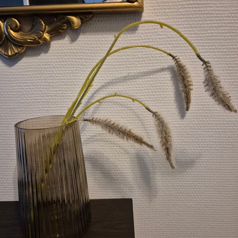 Myydään upea maljakko sekä siihen sopiva teko viherkasvi.