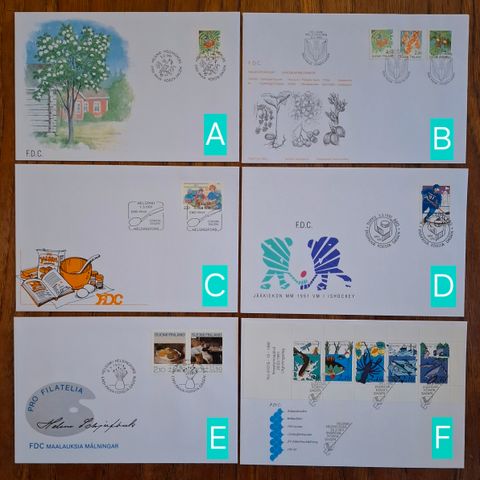 FDC 2001: Verla;Joulupukki;Tikkoja;Maakuntakukat;Suunnistuksen MM;Maakuntakalat