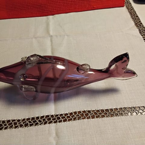 Lasinen kala. Studiolasin vanhempaa tuotantoa. Ei säröjä eikä halkeamia. Kyljessä joku txt