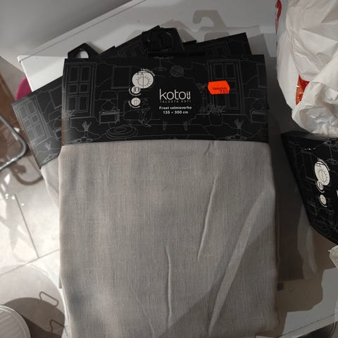 4 kpl kuvanmukaisia verhoja. Alakulmissa painot ommeltuna sisään. Yläreunassa verhotankokuja ommeltuna valmiiksi.