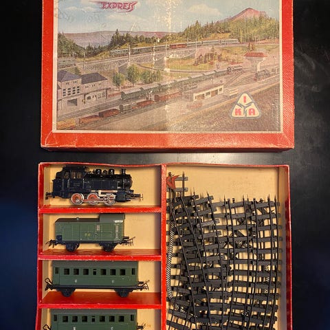 Piko Modellbahn Junior sähköjunasarja, 1980-luvun alkupuolelta. 1:87 / 16,5mm. Alkuperäisessä pakkauksessa veturi, 2 vaunua, kaikki ratapalat, nopeudensäädin/virtalähde. Valmistusmaa: GDR. Yksi lattaliitin vaihdettu, ei alkuperäinen Piko-merkkinen. (Mahdollisesti vaihdettava alkuperäiseen Piko-liittimeen). Muilta osin täysin ehjä kokonaisuus ja veturi liikkui radalla testattaessa. (Nouto tai postituskulut lisätään hintaan).