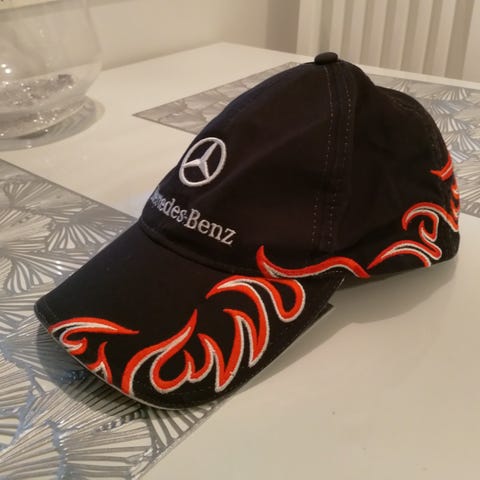 Myydään kuvassa näkyvä musta Mercedes-Benz lippalakki 100% nahkaa. Mb-logo tarrakiinnityksellä. Hinta:60€