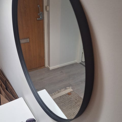 Pyöreä sisustus peili, halkaisija 50cm/peiliosa 20cm. Siisti ja ehjä, vain nouto. 10e.
